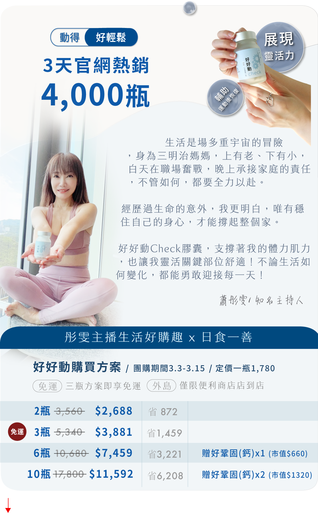 【彤雯主播生活好購趣】好好動check(30粒/瓶)