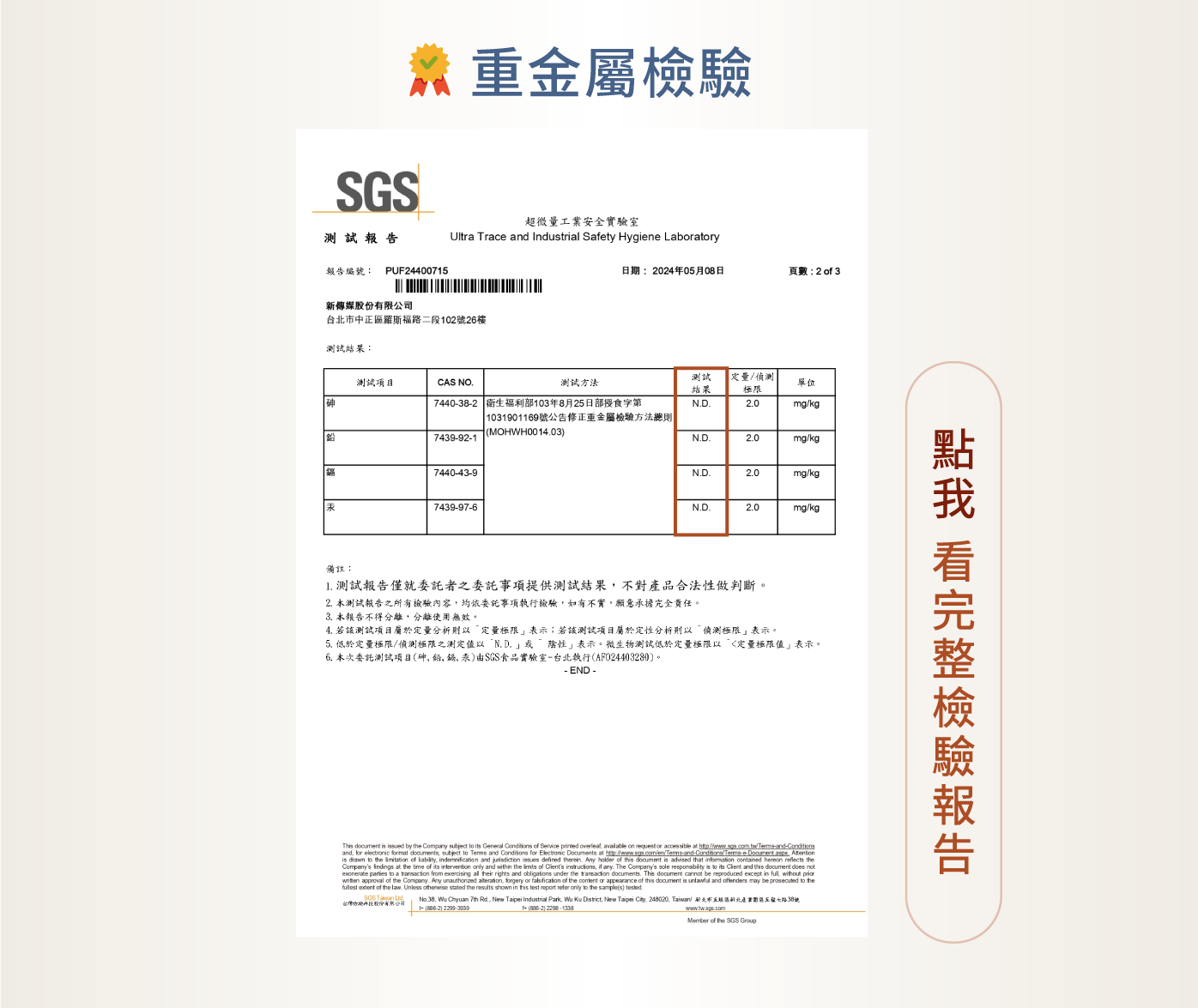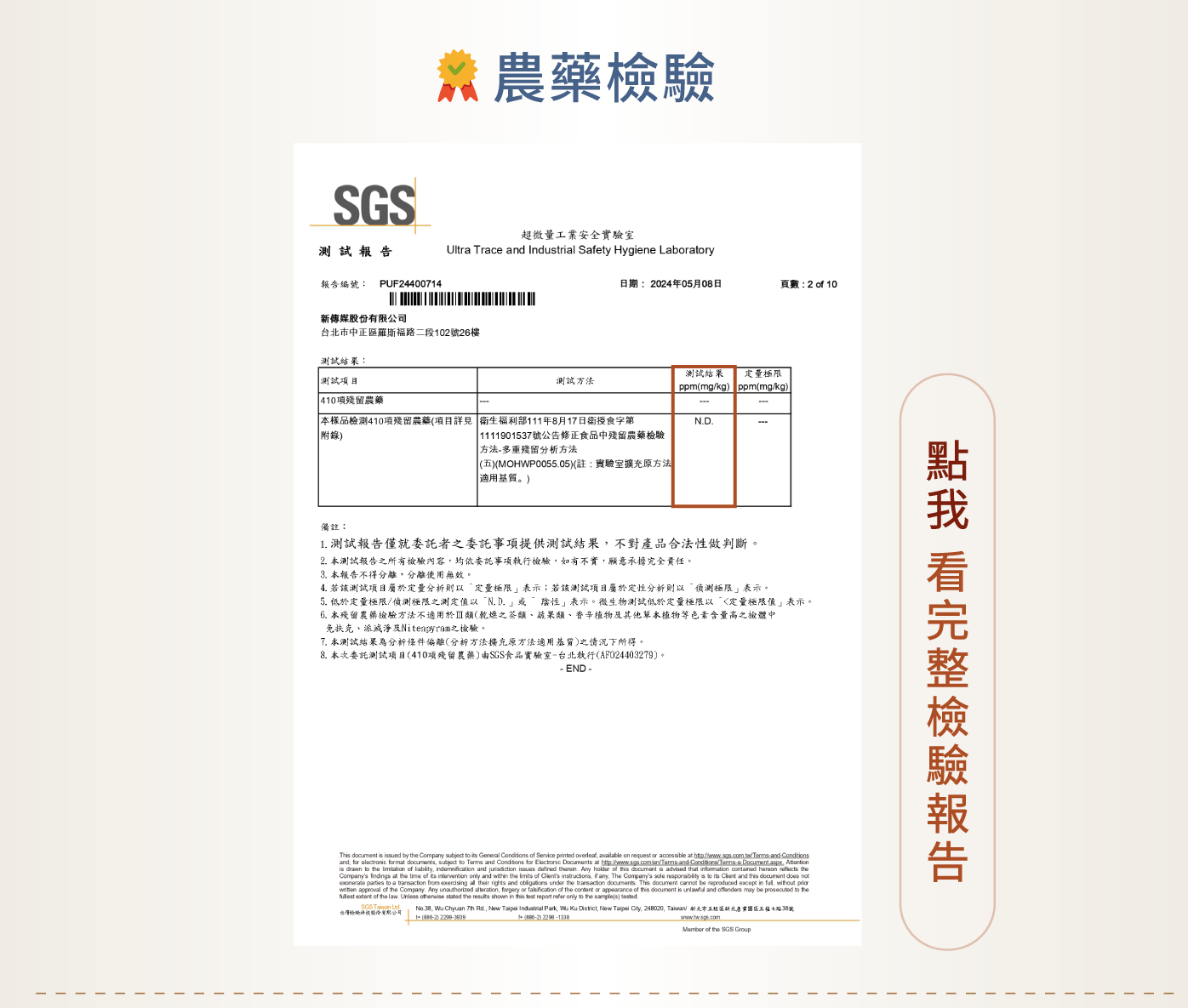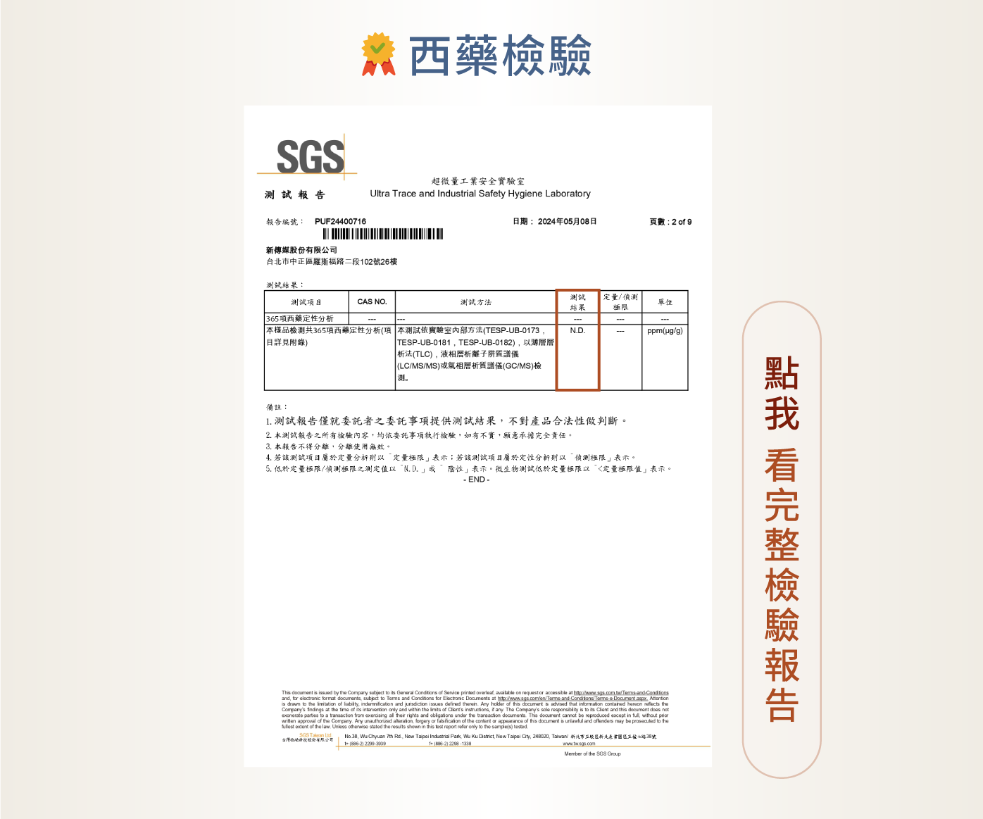 SGS農藥、重金屬、西藥共779項未檢出