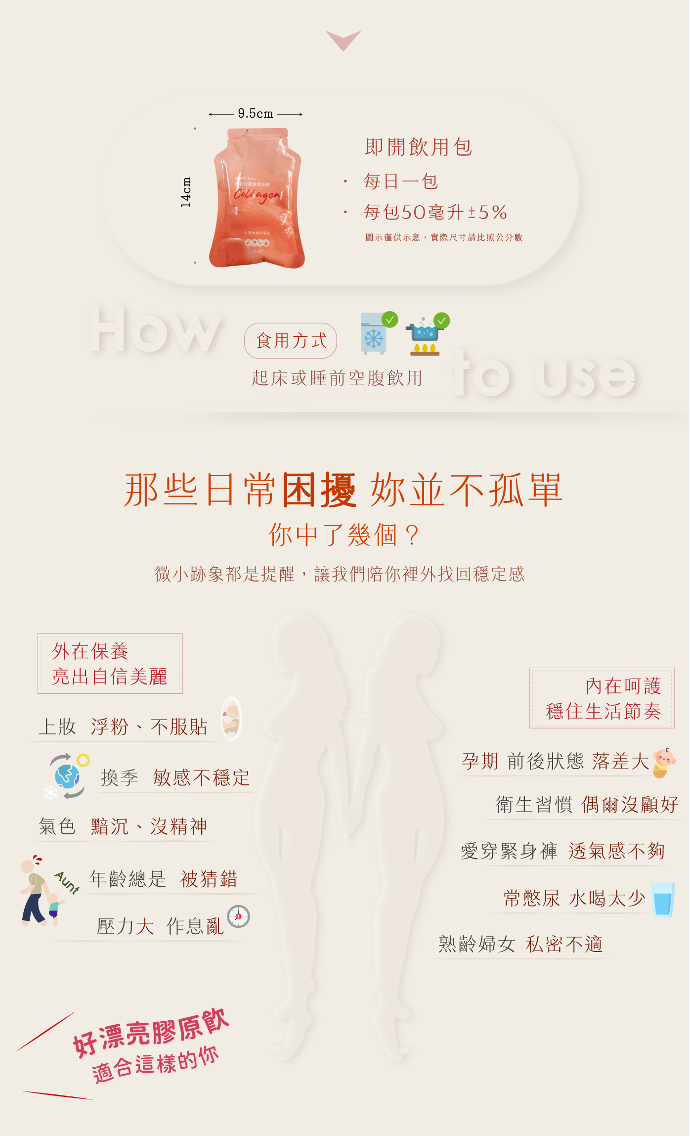 👫 適合族群 : 養顏美容、病後補養、輕熟齡保養、換季變化、易脫妝、私密困擾