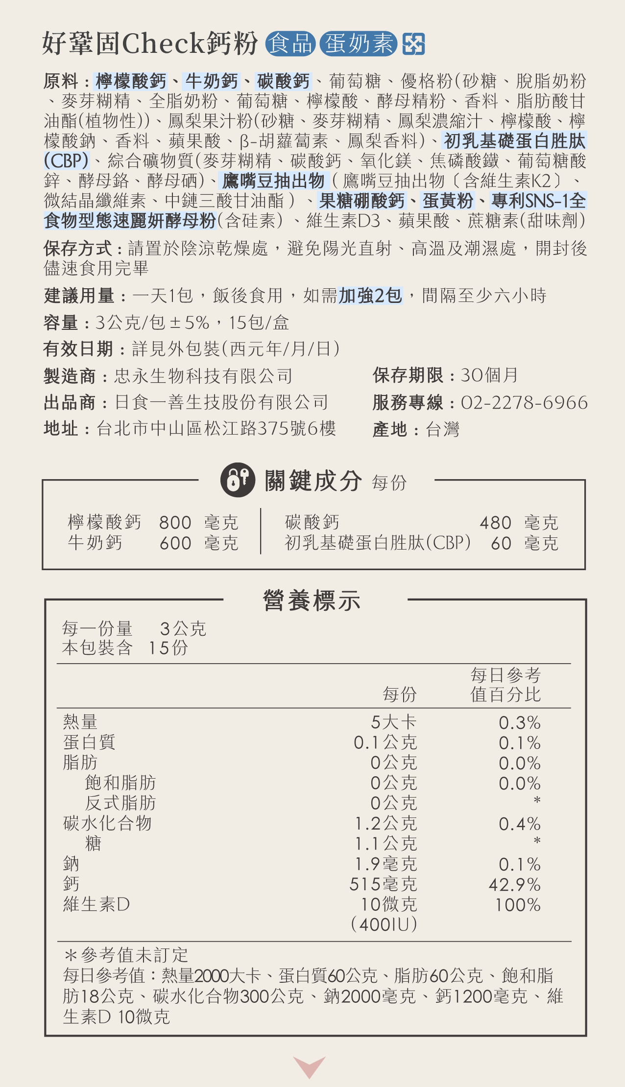 ☑️多重鈣配方:天然牛奶鈣、碳酸鈣、檸檬酸鈣